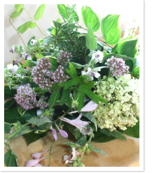 アレンジの基礎から学びます。花にもこだわり、季節の花や珍しい花も取り入れつつ、 庭のグリーンも使いながらレッスンしていきます。また、プリザーブドフラワーやアーティフィシャルフラワーも使う時もあります。
