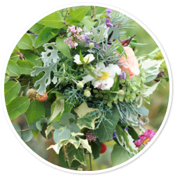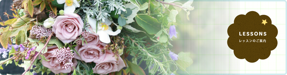 アレンジの基礎から学びます。日英フラワーアレンジメント協会(J.E.F.A.S)のカリキュラムに沿って、花にもこだわり、季節の花や珍しい花も取り入れつつ、 庭のグリーンも使いながらレッスンしていきます。